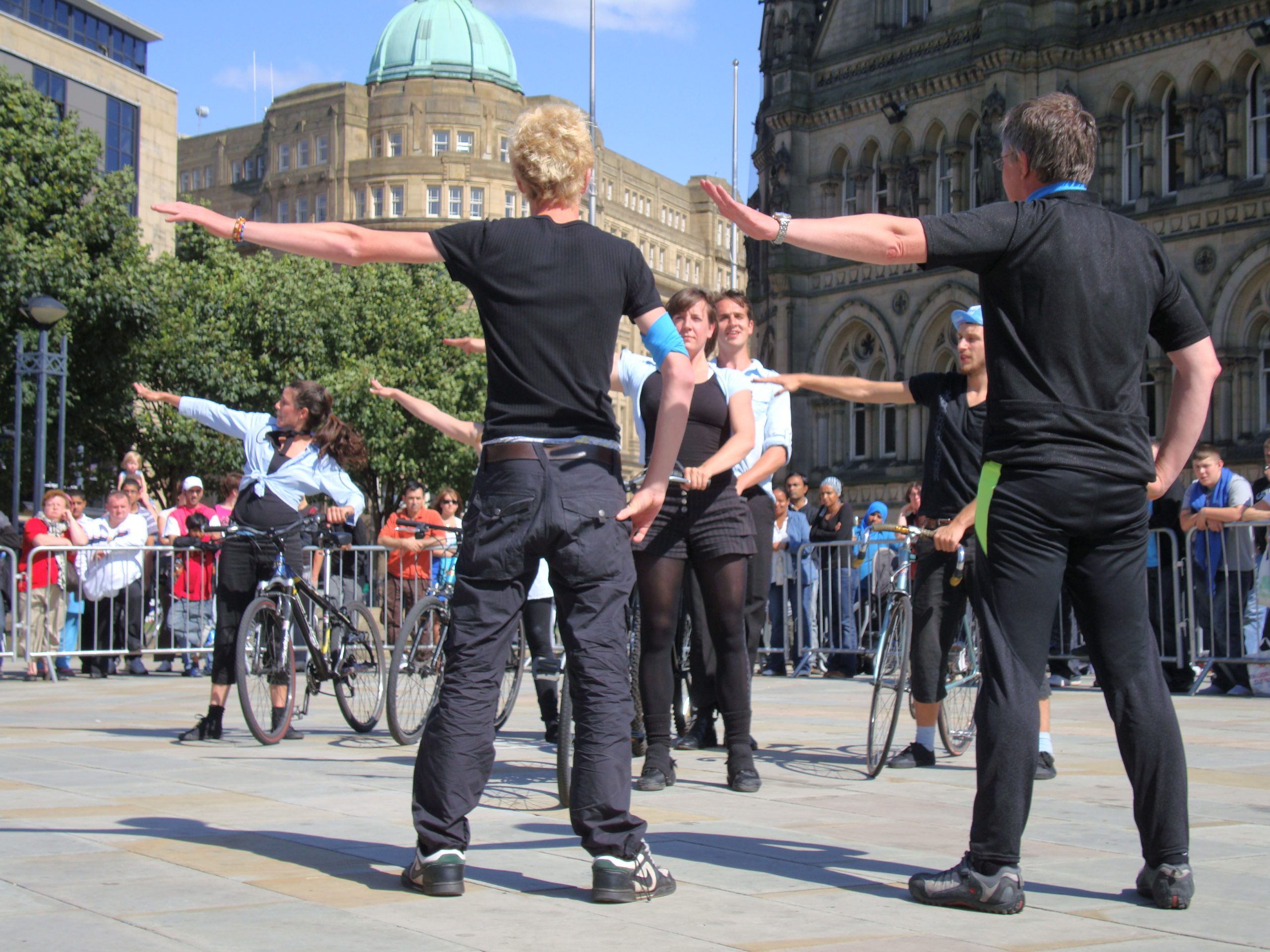 Participants bring your own bike and wear a black top, trousers and shoes for the performance